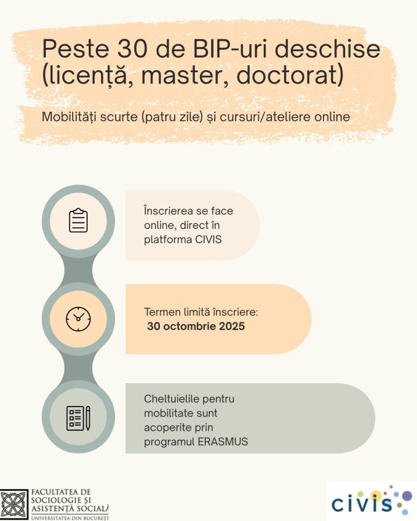 Până pe 30 octombrie vă puteți înscrie la unul din peste 30 de BIPuri deschise.