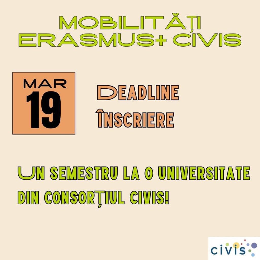 Puteți aplica pentru o bursă pentru o mobilitate de un semestru prin programul Erasmus+CIVIS. 10 universități din Europa, 300 de locuri! Deadline pentru aplicații este 19 martie. Pare că e timp, dar noi vă sfătuim să nu așteptați până în ultima zi. Sunt multe informații de parcurs înainte de a aplica, deci dați-vă timp să le parcurgeți pe îndelete.
